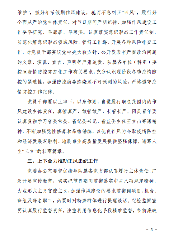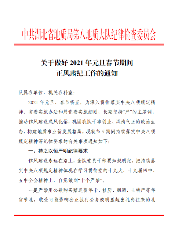 关于做好2021年元旦春节期间正风肃纪工作的通知