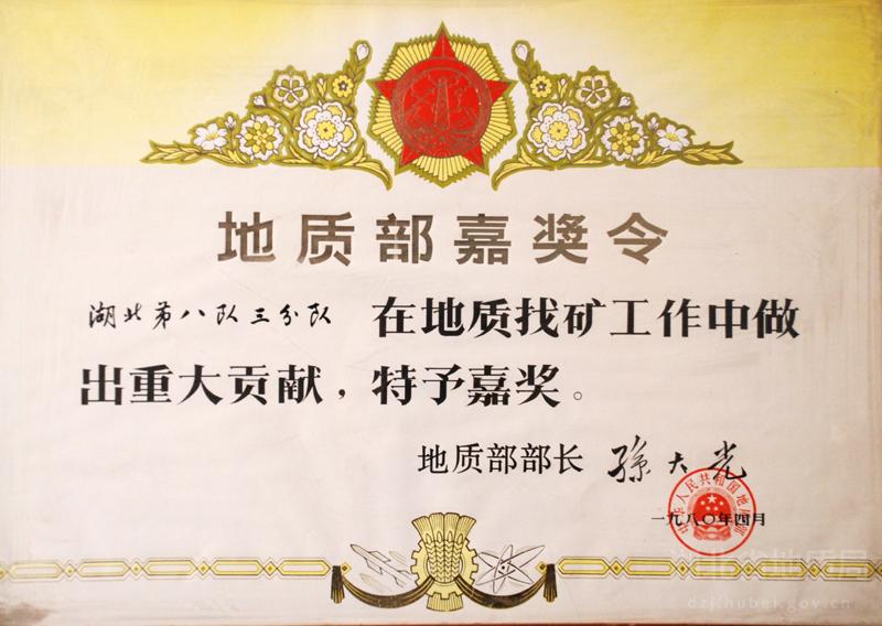 1980年地质部嘉奖令