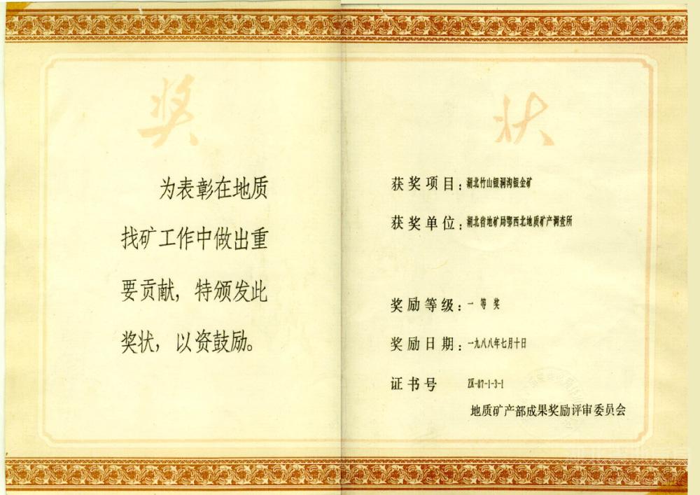 1988年地矿部找矿成果一等奖