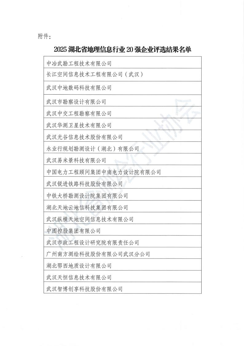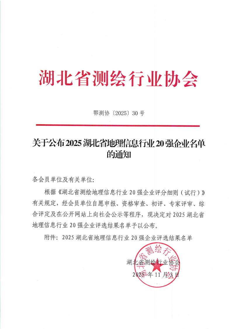 11月3日,湖北省测绘行业协会公布行业20强企业名单,设计公司光荣上榜。